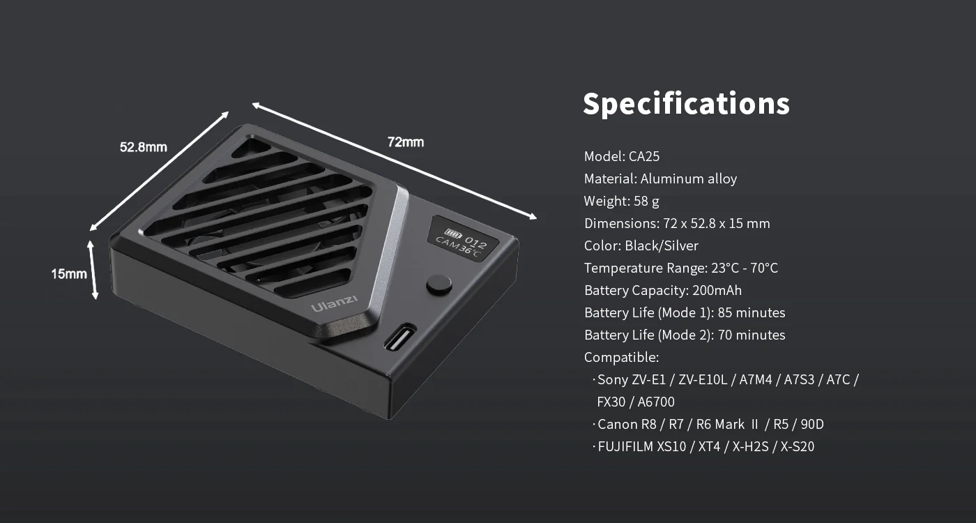 - Real-time Monitoring of Temperature and Fan Speed: 0.46-inch OLED display design, clear display of camera temperature and fan speed levels.