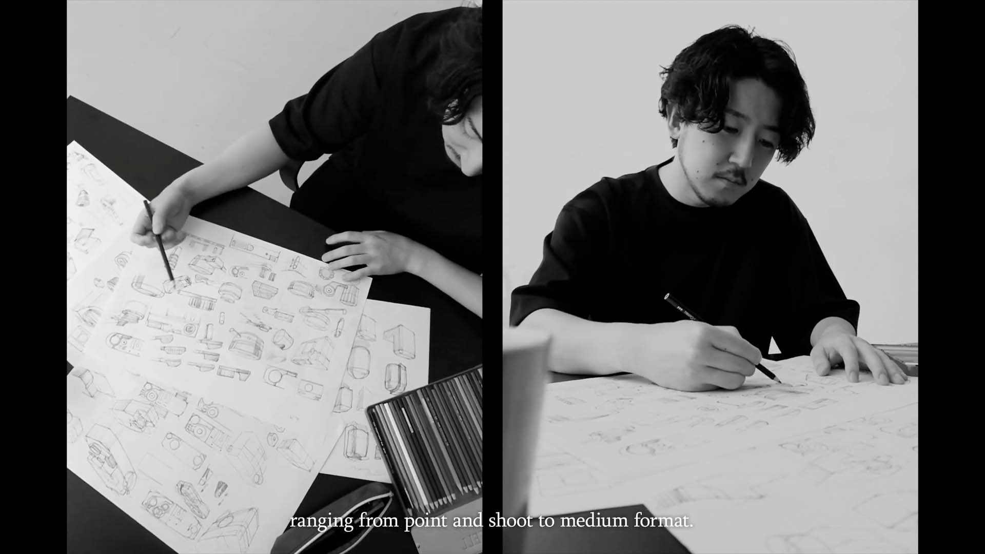 Fujifilm released a new teaser featuring Hayato Ueno, the designer of the Fujifilm X-Half Frame, and it continues its split fame video theme. The most interesting frames from the video can be found below. One features sketches of the Fujifilm X-Half Frame, while the other shows split frame negatives.