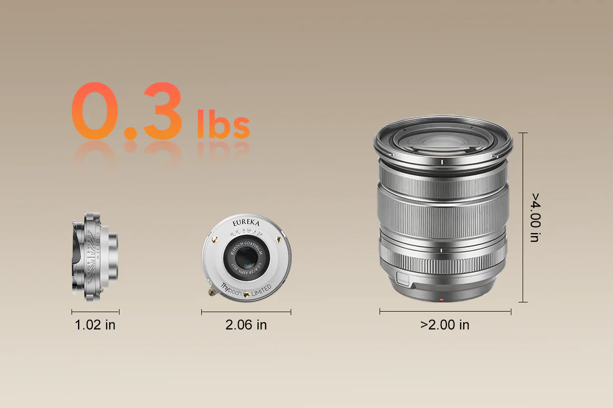Besides the M mount version, Thypoch specially releases an X mount version and an M-X adapter to maintain the aesthetic consistency between the camera body and the lens based on the refined, vintage appearance of Eureka and the design of Fujifilm cameras. Even when adapted, its compact size remains lightweight and balanced, making it an ideal choice for those who appreciate classic aesthetics without compromising modern optical quality.