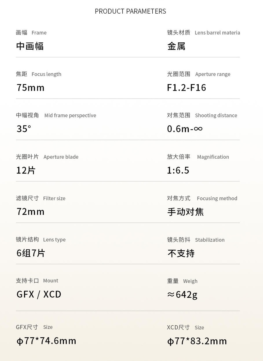 SG-Image announced a new 75mm f/1.2 medium format lens for GFX and XCD mount – here are the details: